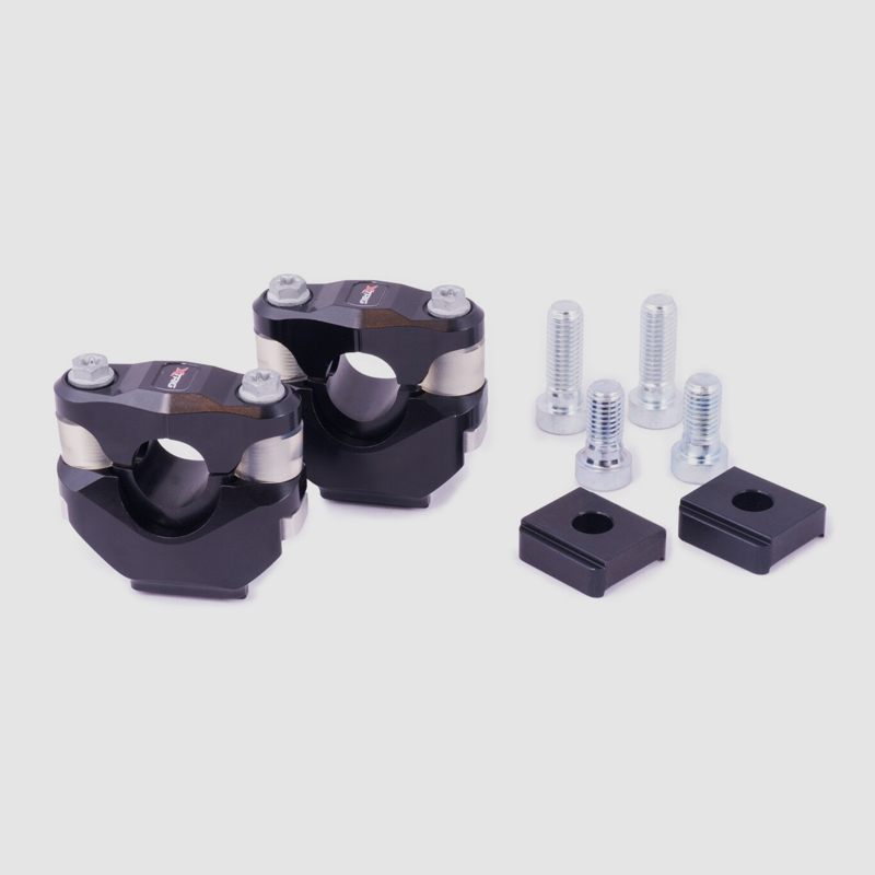 The PHDS (Progressive Handlebar Dampening System) is a system mounted on elastomers that absorbs vibration from the motor and chassis. In addition, the system dampens the forces acting on the handlebars in the horizontal and vertical directions, while maintaining perfect steering precision. Depending on the type of mounting on the triple clamp, there are many possibilities for handlebar adjustment and adaptability to the needs of each rider. Through exchangeable elastomers, the hardness can be adjusted individually (soft - green, medium - yellow (standard), hard - red).
