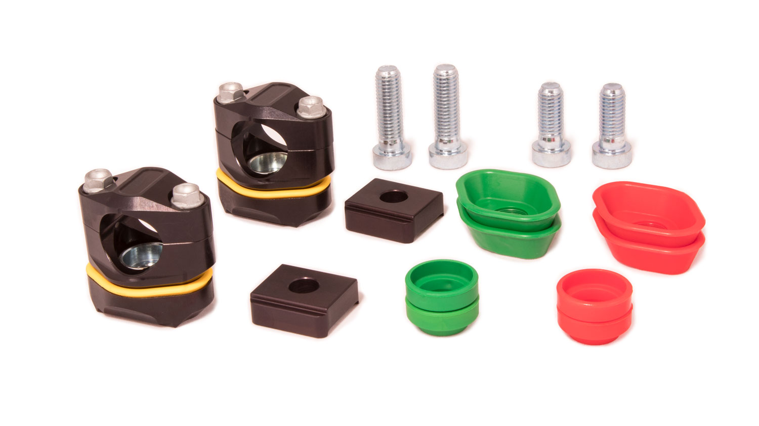 Like the PHDS, the FlexFix is a system mounted on elastomers that absorbs vibration from the motor and chassis. This system also dampens the forces acting on the handlebars in both horizontal and vertical directions, while maintaining handlebar precision. By mounting on the triple clamp, there are many possibilities for handlebar adjustment and adaptability to the needs of each rider.  The low overall height of the FlexFix makes it possible to mount the handlebar 6mm lower than the M12 PHDS. Through exchangeable elastomers, the hardness can be individually adjusted (soft - green, medium - yellow (standard), hard - red). Available for 28.6mm and 36mm handlebars.