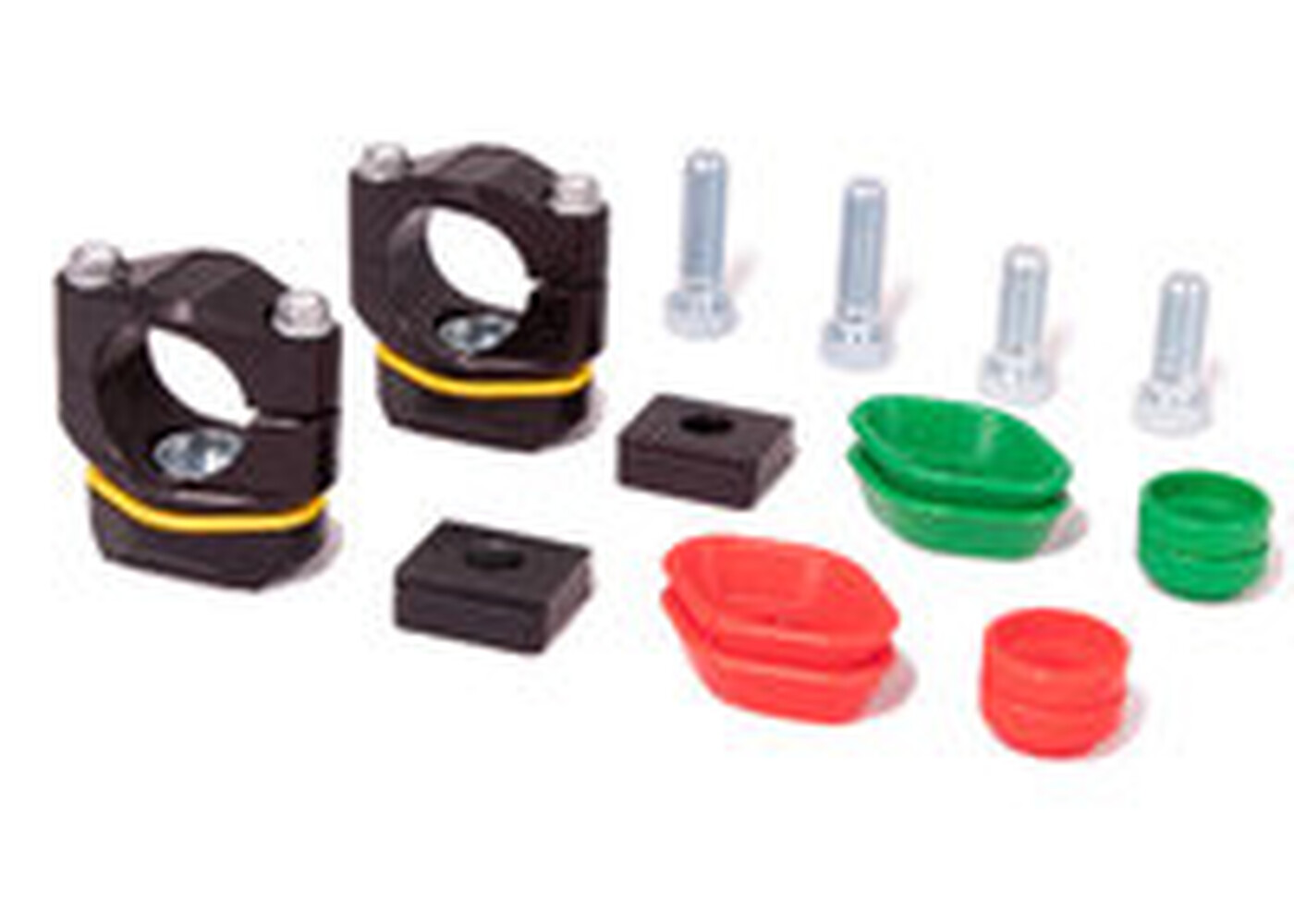 Like the PHDS, the FlexFix is a system mounted on elastomers that absorbs vibration from the motor and chassis. This system also dampens the forces acting on the handlebars in both horizontal and vertical directions, while maintaining handlebar precision. By mounting on the triple clamp, there are many possibilities for handlebar adjustment and adaptability to the needs of each rider. The low overall height of the FlexFix makes it possible to mount the handlebar 6mm lower than the M12 PHDS. Through exchangeable elastomers, the hardness can be individually adjusted (soft - green, medium - yellow (standard), hard - red). Available for 28.6mm and 36mm handlebars.